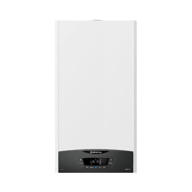 Настенный котел Ariston (Аристон) CLAS XС 35 FF NG имеет закрытую камеру сгорания, поэтому воздух для образования смеси с газом подается по специальному воздуховоду. После оптимального смешивания газа с воздухом смесь попадает в горелки и происходит ее возгорание. Выделяющаяся в ходе сгорания газа теплота идет на обогрев двух контуров для отопления и ГВС.