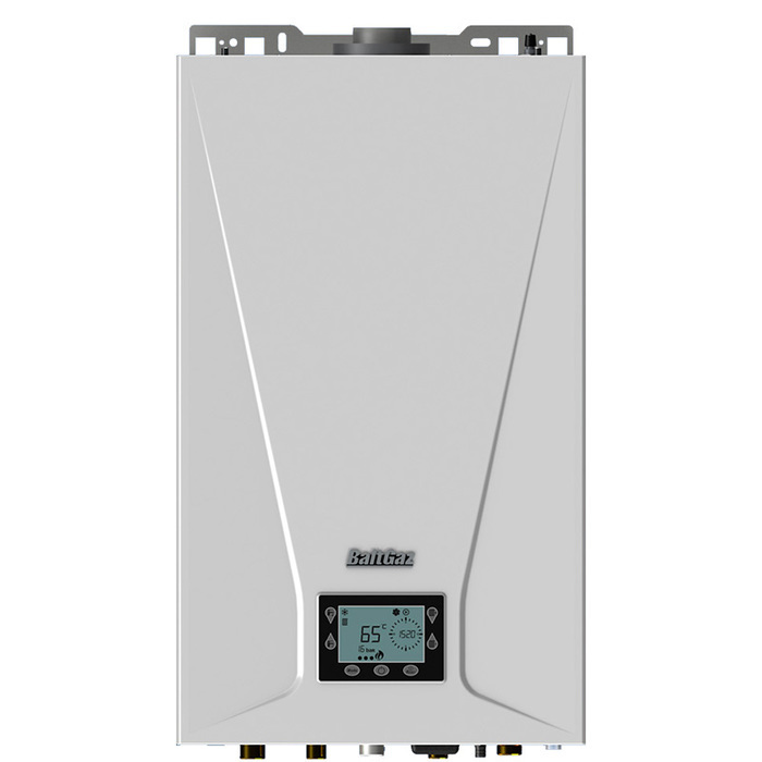 Двухконтурный газовый котел BaltGaz (БалтГаз) Turbo E 14 (сж) монтируется классическим настенным способом и отличается тем, что экономно расходует энергию и эффективен в любое время года. Прибор оснащен режимами «Зима» и «Лето», поэтому способен работать только на систему ГВС или на отопление и ГВС одновременно. Оборудование оснащено встроенной электронной панелью управления, на которой отображаются максимально точное поддержание заданных параметров. Прибор безопасен и прост в эксплуатации. Медный теплообменник гарантирует агрегату высокую эффективность работы. Такой котел укомплектован современной шумоизоляцией и не создает шум в процессе работы, и предназначен для подключения к дымоходу для удаления продуктов сгорания за пределы. Данные о работе агрегата отображаются на жидкокристаллическом дисплее.