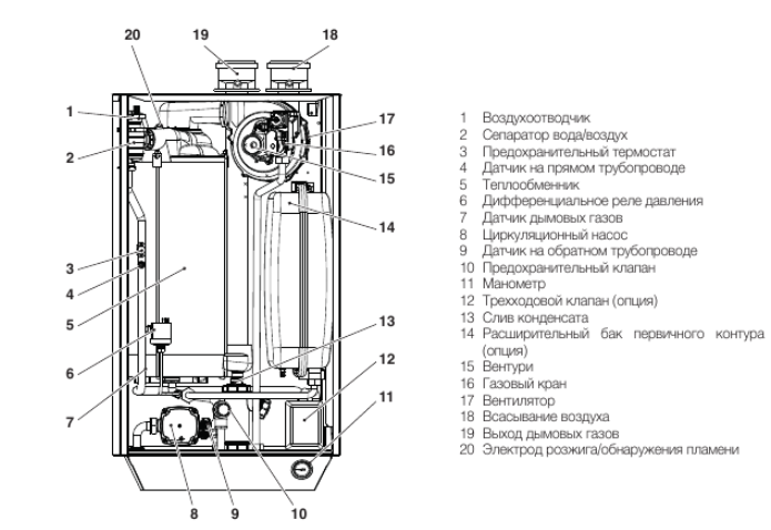 - Возможность установки трехходового клапана в корпус котла