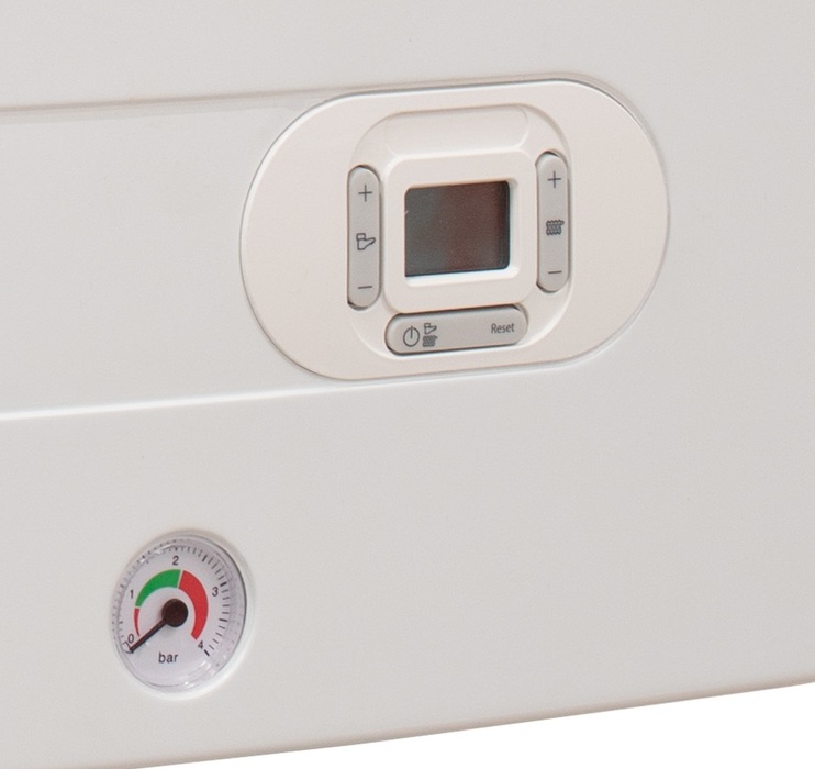 - Жидкокристаллический дисплей для отображения температуры в контуре отопления и ГВС, кодов блокировок, установок температуры отопления, горячей воды и режима работы котла