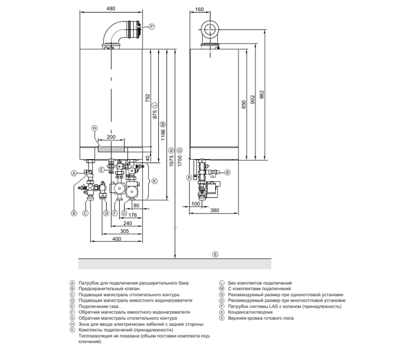 - Не требуется дополнительного монтажного пространства при обслуживании котла, все компоненты легко доступны с фронта котла;