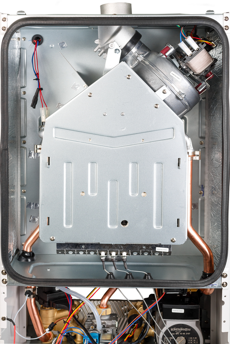 - Вторичный теплообменник из нержавеющей стали увеличенного объема.