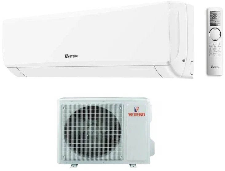 VETERO (Ветеро) Bonum Pro V—S09BHPAC—P – это тепловой насос воздух-воздух, работающий на экологичном фреоне R32. В наружный блок модели встроен ротационный инверторный компрессор. Внутренний блок поддерживает функции самоочистки, самодиагностики, авторестарта, таймера и пр. Управлять насосом можно с помощью пульта или приложения в смартфоне по Wi-Fi.