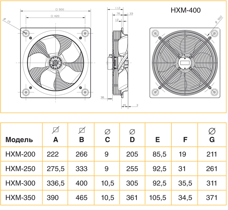 - Модель HXM-400: класс защиты IP44, класс изоляции F, с шариковыми подшипниками, встроенной термозащитой и клеммной коробкой.