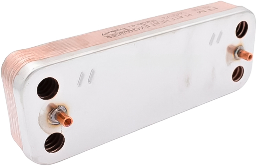 Пластинчатый теплообменник Moguchi (Могучи) Теплообменник (MG08020001), обеспечивающий нагрев воды для хозяйственных нужд. Корпус изделия выполнен из пластин, через которые проходят трубы. Такая конструкция увеличивает площадь теплообмена в несколько раз, что является базовым условием функционирования оборудования.