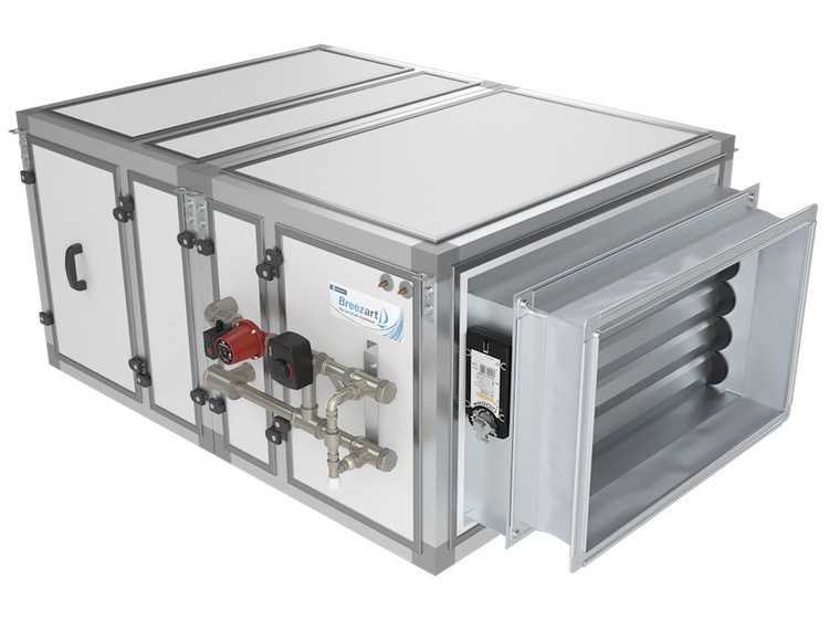 Приточная вентиляционная установка Breezart (Бризарт) 4500 Aqua AC – это климатическое оборудование, которое стационарно монтируется в здании и служит для нагнетания воздуха с улицы в его помещения. Такой тип вентиляции используется в тех случаях, когда отсутствует естественная циркуляция воздуха на объектах любого назначения.