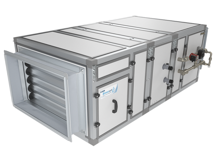 Приточная вентиляционная установка Breezart (Бризарт) 6000C Aqua W обеспечит не только приток свежего воздуха в помещение, но также возможность кондиционирования (комплектация оборудования предусматривает встроенный водяной охладитель). Модель обладает компактными размерами, низким уровнем шум, высокой надежностью и эффективностью.