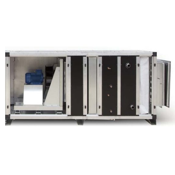 - Усиленный блок вентиляторной секции, который позволяет производить монтаж установки в горизонтальном и в вертикальном положении.