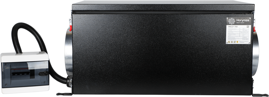 Приточная модель установки Horynize (Хоринайз) CF-700 прекрасно подходит для внутреннего размещения в помещениях различного типа площадью до 110 квадратных метров для подачи свежего воздуха извне. Система управления и протоколы подключения позволяют интегрировать устройство в систему «Умный дом». Применение нескольких температурных датчиков позволит определить необходимую степень нагрева поступающего воздуха и не допустить перерасхода энергии у покупателя.