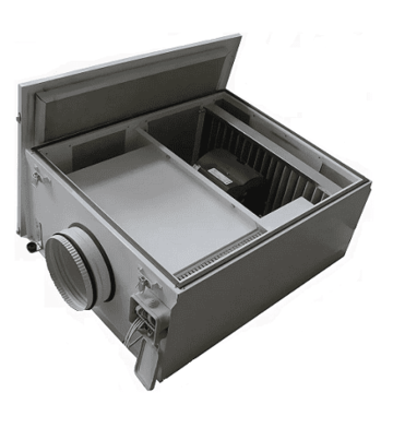 - Установка состоит из фильтра, электрокалорифера и вентилятора.