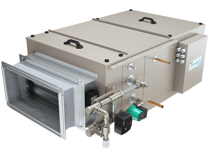 - Водяной нагреватель со смесительным узлом с 2-х или 3-х ходовым клапаном.