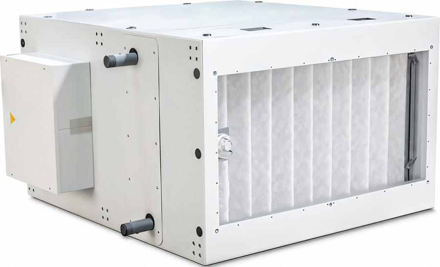 - Возможность интеграции в систему вентиляции модуля уф-обеззараживания (модуль ультрафиолетового обеззараживания предназначается для инактивации патогенной микрофлоры в потоке воздуха).