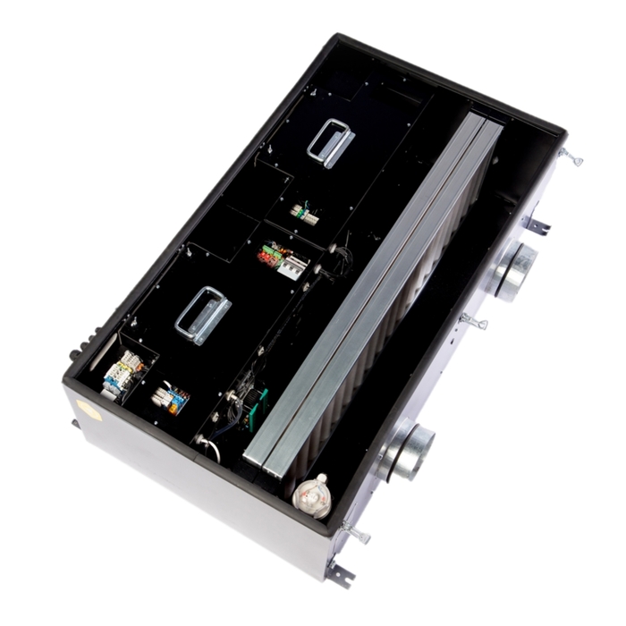 Приточная канальная вентиляционная установка Minibox (Минибокс) E-2050 PREMIUM GTC устанавливаются внутри помещения при помощи крепежных кронштейнов из комплекта. Оборудование оснащено простой электронной панелью управления. Шумо- и виброизолированный корпус из высококачественного материала обеспечивает тихую работу устройства.