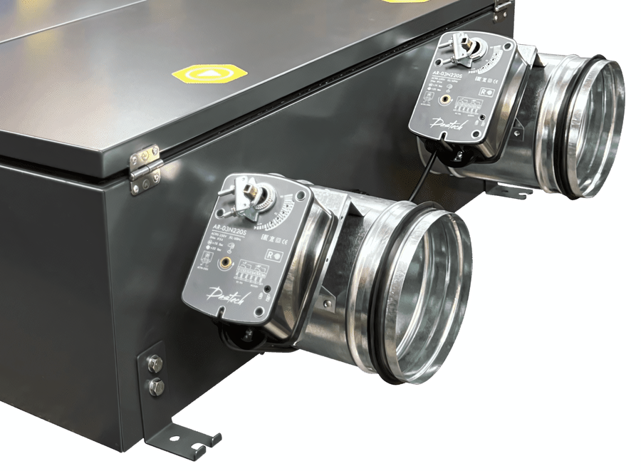 - При отключении установки, воздушный клапан с приводом отсекает доступ холодного воздуха в помещение автоматически.