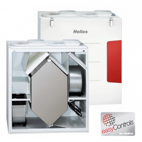 Вентиляционная установка Helios (Гелиос) KWL EC 300 W R/L имеет простое управление и два малошумных вентилятора с энергоэффективными двигателями EC и системой поддержания постоянного объемного расхода воздуха до 300 м3/ч. Наличие фильтра грубой очистки класса G4 обеспечивает чистоту приточного воздуха. Аллергики могут также не опасаться даже мельчайшей пыли благодаря комплектуемому фильтру F7.