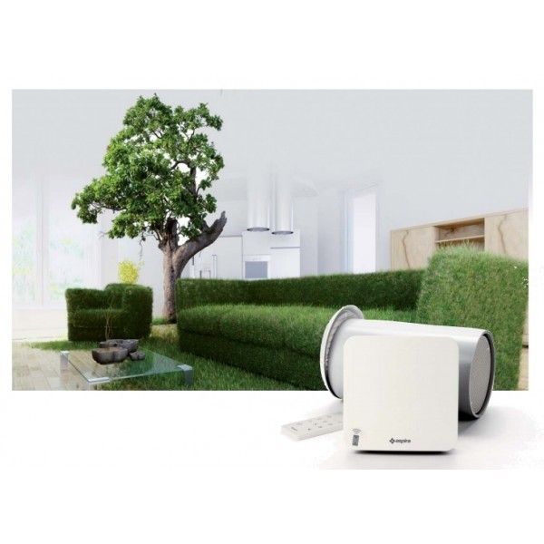 Aspira (Аспира) AP19987S1 – модель ведущего проветривающего устройства с рекуперацией тепла. Прибор допускает возможность ручного и автоматического определения продолжительности циклов рециркуляции воздуха, необходимую скорость воздушного потока и интенсивность осушения воздуха. Для автоматического поддержания заданных параметров оборудование использует информацию, поступающую со встроенных в него датчиков.