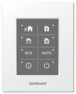 Пульт управления Komfovent (Комфовент) C6.2 для установок DOMEKT-R с сенсорными кнопками. Различные режимы работы предварительно запрограммированы для всех типов условий эксплуатации. Задача панели управления — автономно поддерживать микроклимат, наиболее подходящий для окружающей среды, путем адаптации системы к повседневным потребностям пользователя.