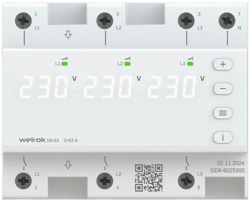 Серия реле напряжения Welrok D6 представляет собой линейку современных защитных устройств, разработанных для мониторинга и контроля качества электроэнергии. Модели этой серии характеризуются надежностью, простотой монтажа на стандартную DIN-рейку и наличием интеллектуальных функций, таких как защита от перенапряжения, нижнего напряжения, а также контроль чередования фаз. Устройства серии предназначены для бытового и коммерческого использования, обеспечивая сохранность дорогостоящей техники и бесперебойную работу электросистем.