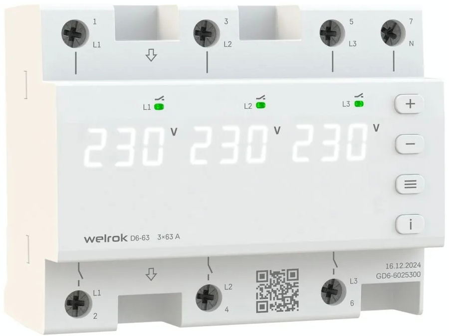 Серия реле напряжения Welrok D6 представляет собой линейку современных защитных устройств, разработанных для мониторинга и контроля качества электроэнергии. Модели этой серии характеризуются надежностью, простотой монтажа на стандартную DIN-рейку и наличием интеллектуальных функций, таких как защита от перенапряжения, нижнего напряжения, а также контроль чередования фаз. Устройства серии предназначены для бытового и коммерческого использования, обеспечивая сохранность дорогостоящей техники и бесперебойную работу электросистем.