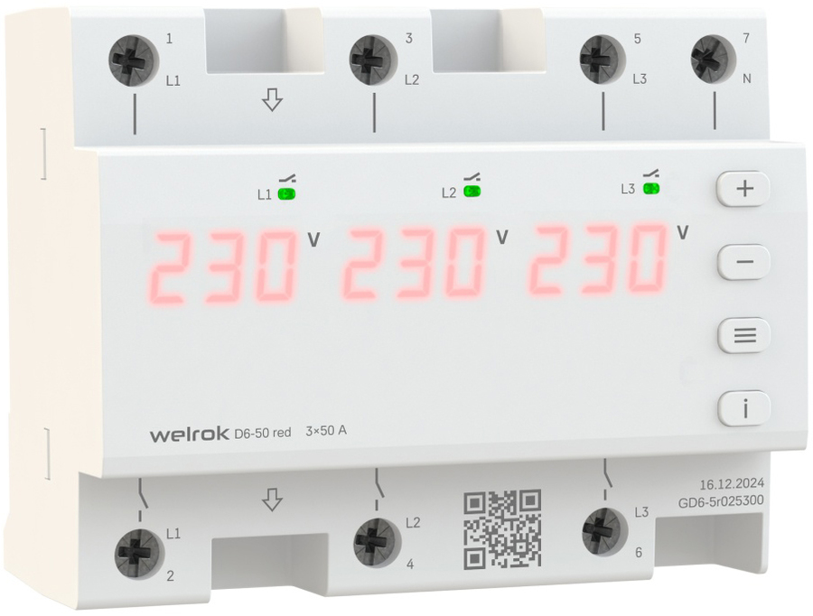 Реле напряжения Welrok (Велрок) D6-50 red обеспечивает надежную защиту от скачков напряжения. Конструкция предусматривает возможность работы с трех- и однофазными нагрузками. Алгоритм TrueRMS обеспечивает точный контроль и измерение. На срабатывание изделие уходит не более 0.03 секунд, обеспечивая максимальную эффективность.