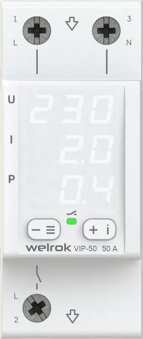 Welrok (Велрок) VIP-50 представляет собой модель многофункционального реле напряжения с тремя индикаторами. Он необходим для защиты однофазной сети от резких перепадов напряжения, а также последствий обрыва линий электропередач. Отличается быстрой скоростью срабатывания (менее 0,03 сек).