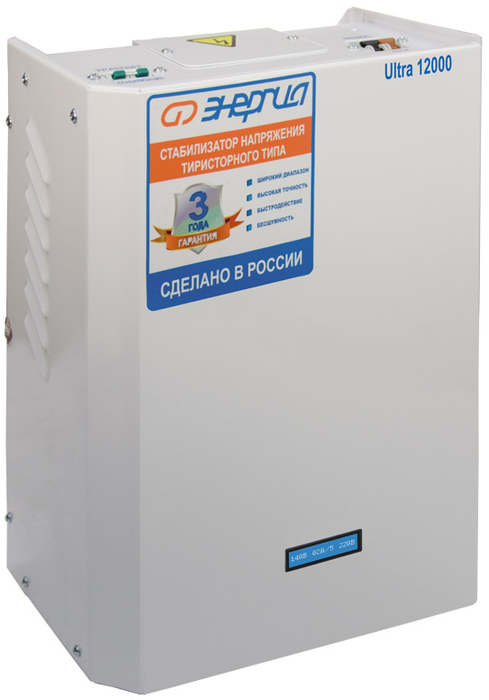 Стабилизаторы напряжения серии Ultra российского производителя Энергия являются идеальным сочетанием функциональности, надежности и долговечности. Тиристорные модели имеют почти что неограниченный ресурс и потому будут надежно работать много лет. В данную серию входит 7 моделей с мощностью от 500 до 35000 ВА.