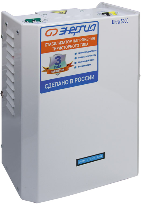 Стабилизаторы напряжения серии Ultra российского производителя Энергия являются идеальным сочетанием функциональности, надежности и долговечности. Тиристорные модели имеют почти что неограниченный ресурс и потому будут надежно работать много лет. В данную серию входит 7 моделей с мощностью от 500 до 35000 ВА.