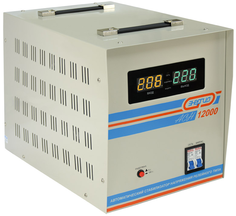 Энергия АСН-12000 с цифр. дисплеем – это стабилизатор напряжения, имеющий высокие технические характеристики. Модель выполнена в металлическом корпусе и устанавливается на пол. На дисплее отображаются значения напряжения на входе и на выходе. Стабилизатор может работать при температуре воздуха вокруг до -20 градусов.