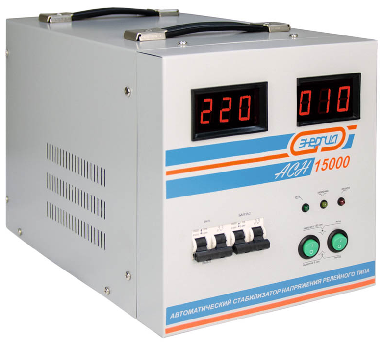 Стабилизатор напряжения Энергия АСН-15000 с цифр. дисплеем отличается от прочих аналогов высокой надежностью своей работы. Система принудительно охлаждения защищает оборудование от перегрева, а специальный выключатель – от перегрузки и короткого замыкания. Контроллер выстроен на базе микропроцессора.