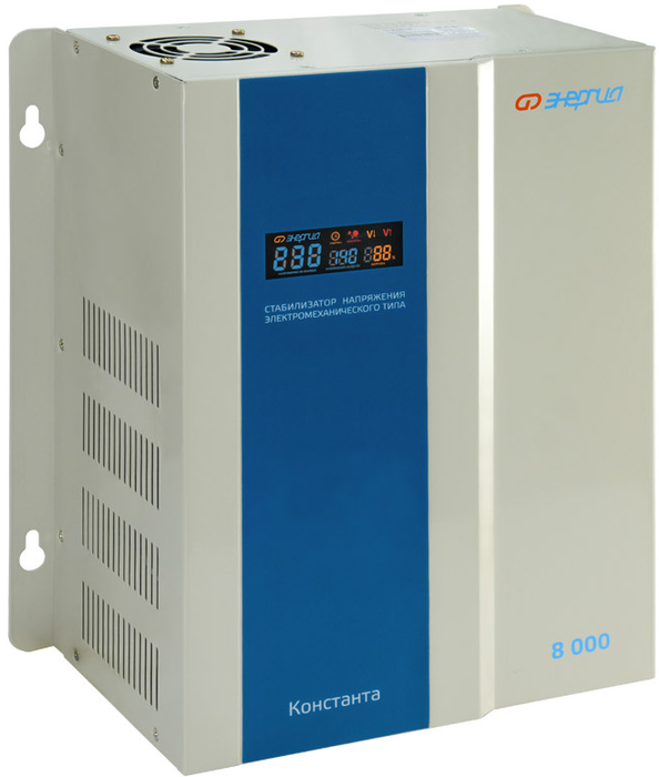 Серия Константа российского производителя Энергия представлена четырьмя моделями электромеханических стабилизаторов напряжения. Все они характеризуются высокой точностью и скоростью стабилизации, работая в широком диапазоне напряжений. Термозащита обеспечивает отключение нагрузки в случае, если превышается температура обмотки.