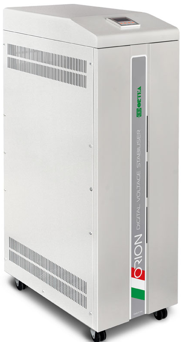 ORTEA (Ортеа) Orion 45 – это стабилизатор напряжения, изготовленный в металлическом корпусе с напольным типом установки. Для большей мобильности прибор снабжен транспортировочными колесиками. На верхней части корпуса находится миниатюрный дисплей, отображающий текущие значения напряжения на входе и на выходе.