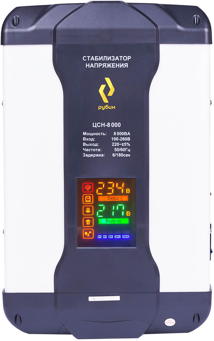Однофазный стабилизатор РУБИН ЦСН 8000 используется с бытовыми потребителями различного назначения. Основная задача — обеспечивать стабильное напряжение при широком диапазоне входных показателей. Подходит для бытовой, климатической и насосной техники. Негерметичный корпус соответствует стандарту IP20.
