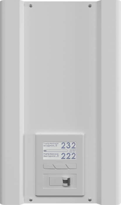 Тиристорный стабилизатор Вольт Engineering (Вольт Инжиниринг) Ампер Э 12-1/50 v2.1 изготовлен в стальном корпусе с учетом компактных размеров. Передняя сторона конструкции оснащена информационным LCD-индикатором, автоматическим выключателем, клавишами управления. Снизу находится защитная крышка, а сверху вентилятор охлаждения.