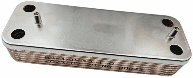 Baxi (Бакси) Теплообменник ГВС пластинчатый вторичный на 12 пластин (5686670) выступает оригинальной запчастью и используется в газовых котлах. Он предназначен для передачи тепла к теплоносителю, поступающему в отопительную систему. Происходит это за счет нагрева гофрированных пластин, которые отдают тепло рабочей жидкости, проходящей через них.