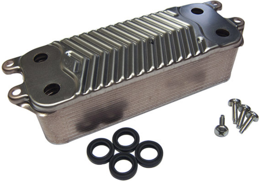 Vaillant (Вайлант) Теплообменник (178973) служит для нагрева воды в системах отопления и горячего водоснабжения. Состоит из 20 металлических гофрированных пластин. Он осуществляет передачу тепловой энергии, выделяемой в процессе сгорания газа, к теплоносителю, проходящему через пластины.