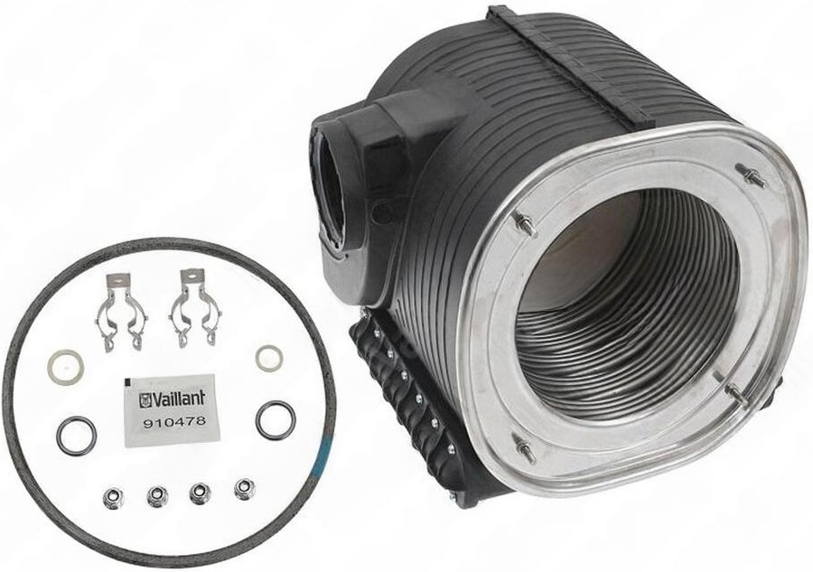 Vaillant (Вайлант) Теплообменник (20268749) используется в газовых котлах данного производителя. Он необходим для осуществления отопительной функции. Его задачей является передача тепла от сгораемого газа к теплоносителю. Данная деталь выполнена из качественно стали, которая устойчива к высоким температурам.