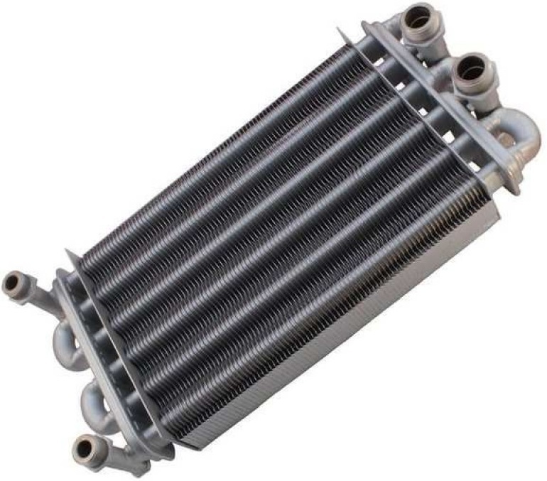 Vaillant (Вайлант) Теплообменник 24кВт (61654) представляет собой важный элемент, устанавливаемый в газовые котлы. Он позволяет передавать тепловую энергию, исходящую от сгораемого в топке газа, к воде, которая затем поступает в отопительную систему. Состоит из нескольких трубок и припаянных к ней пластин.