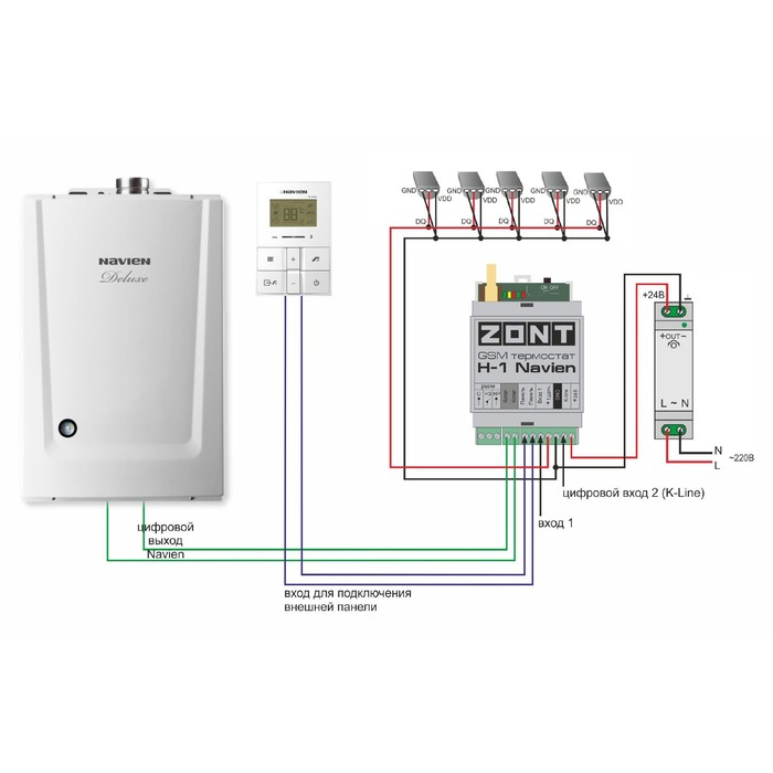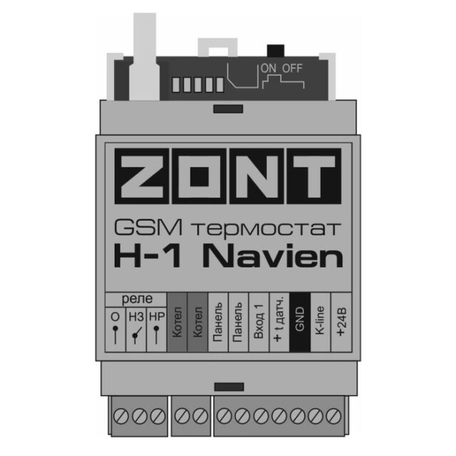 GSM-термостат ZONT (Зонт) GSM H-1 Navien (ML00003713) предназначен для работы совместно с газовыми котлами. Устройство отображает текущее состояние работы оборудования по различным показателям. Благодаря наличию резервной батареи агрегат способен функционировать автономно в режиме мониторинга даже в случае отключения электроэнергии.