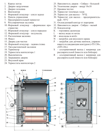 - Автоматическое выключение котла после догорания топлива – термостат для дымовых газов