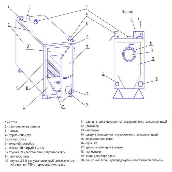В значительной мере повышает КПД котла комбинированная теплоизоляция, которая состоит из “водяной рубашки” и теплоизоляционных экологически чистых материалов, выдерживающих температуры свыше 1300 ºC, вложенных во внешние панели корпуса.