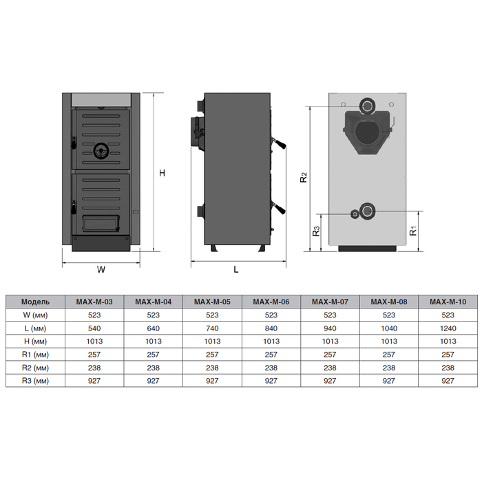 - Возможность использования в качестве топлива дрова, уголь, антрацит, брикеты.