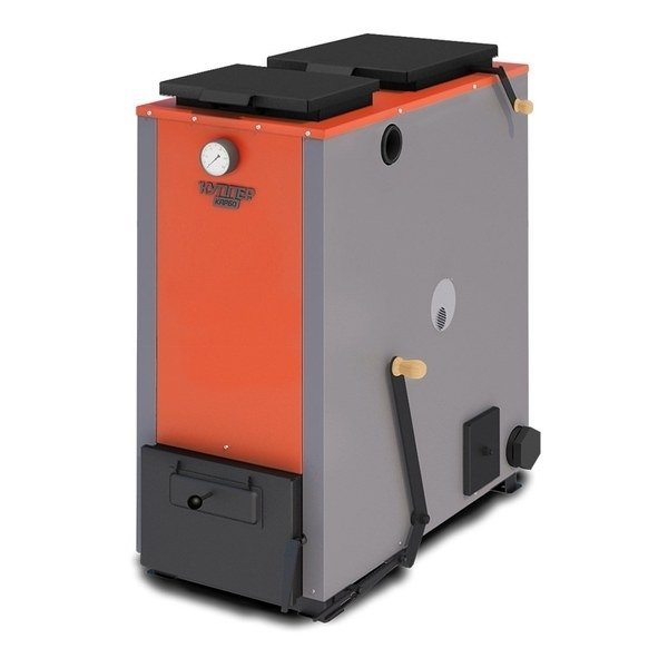Основным топливом для Твердотопливных отопительных котлов Теплодар серии Куппер КАРБО может служить как бурый уголь, так и кокс или даже угольные брикеты, но при этом имеется возможность перехода на газ или пеллеты, если установить горелки. Устройство оснащено регулятором температуры и будет держать нужную температуру даже при сгорании топлива.