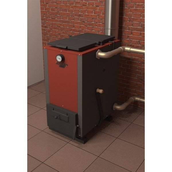 Основным топливом для Твердотопливных отопительных котлов Теплодар серии Куппер КАРБО может служить как бурый уголь, так и кокс или даже угольные брикеты, но при этом имеется возможность перехода на газ или пеллеты, если установить горелки. Устройство оснащено регулятором температуры и будет держать нужную температуру даже при сгорании топлива.