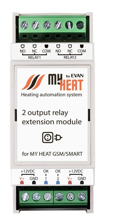 Блок реле на 2 выхода MY HEAT (Майхит) подключается к контроллеру по управляющим проводам и предназначен для коммутации двух выходов электрической нагрузки посредством электромагнитного реле. Используется в автоматизированных системах отопления и ГВС под управлением контроллеров MY HEAT GSM и MY HEAT SMART.