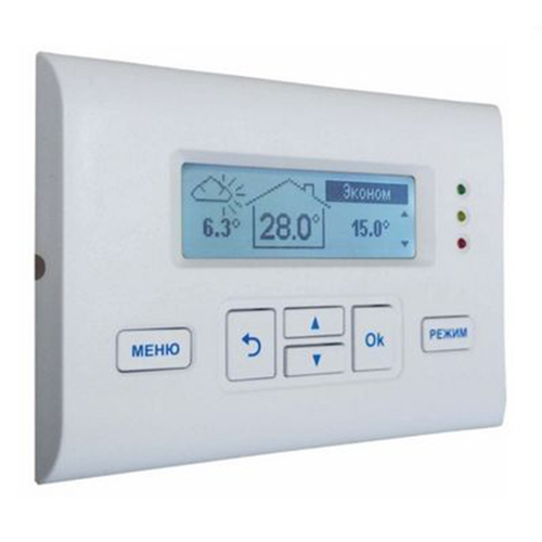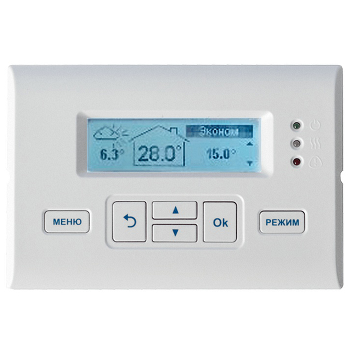 Выносная панель управления ZONT (Зонт) Панель LCD необходима для контроля за рабочими параметрами отопительной системы. Устройство выводит на экран сведения о текущей температуре теплоносителя и других микроклиматических параметрах и оповещает пользователя об авариях. Для изменения режимов работы котла предусмотрена отдельная кнопка.